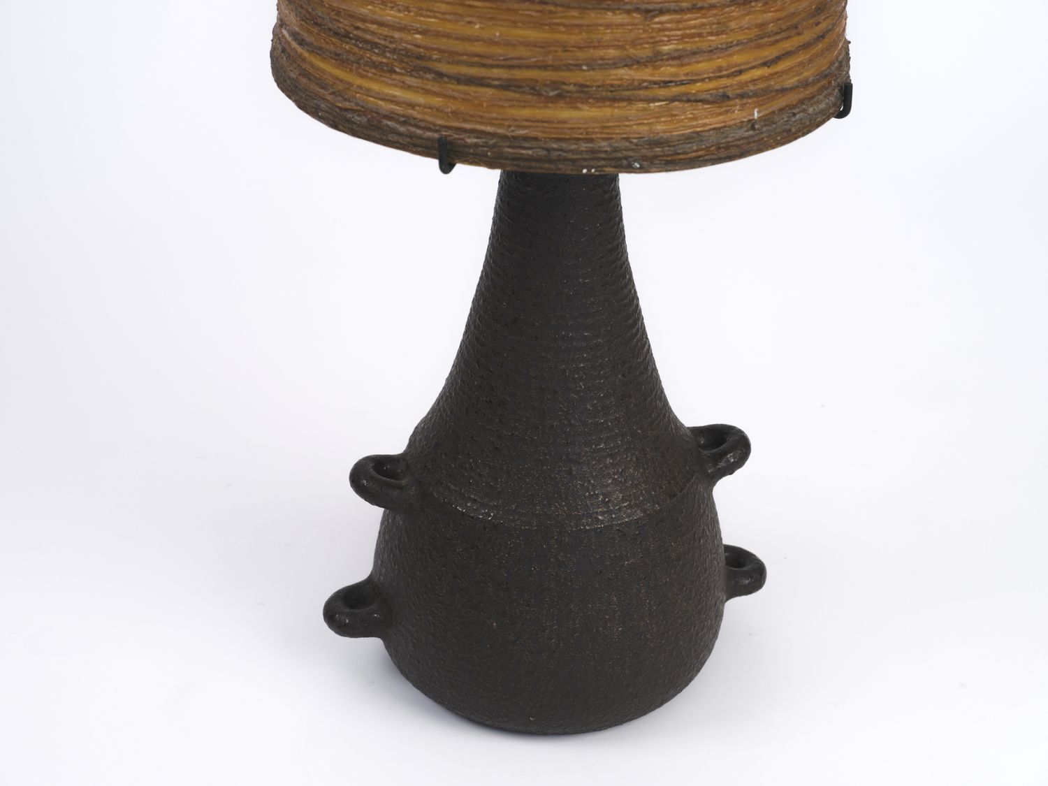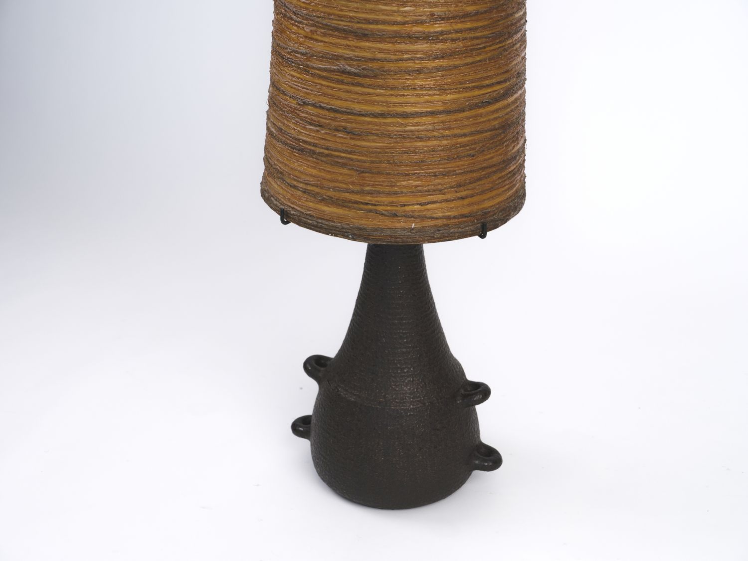 Very large and rare floor lamp with stoneware base. Original conical resin lampshade.