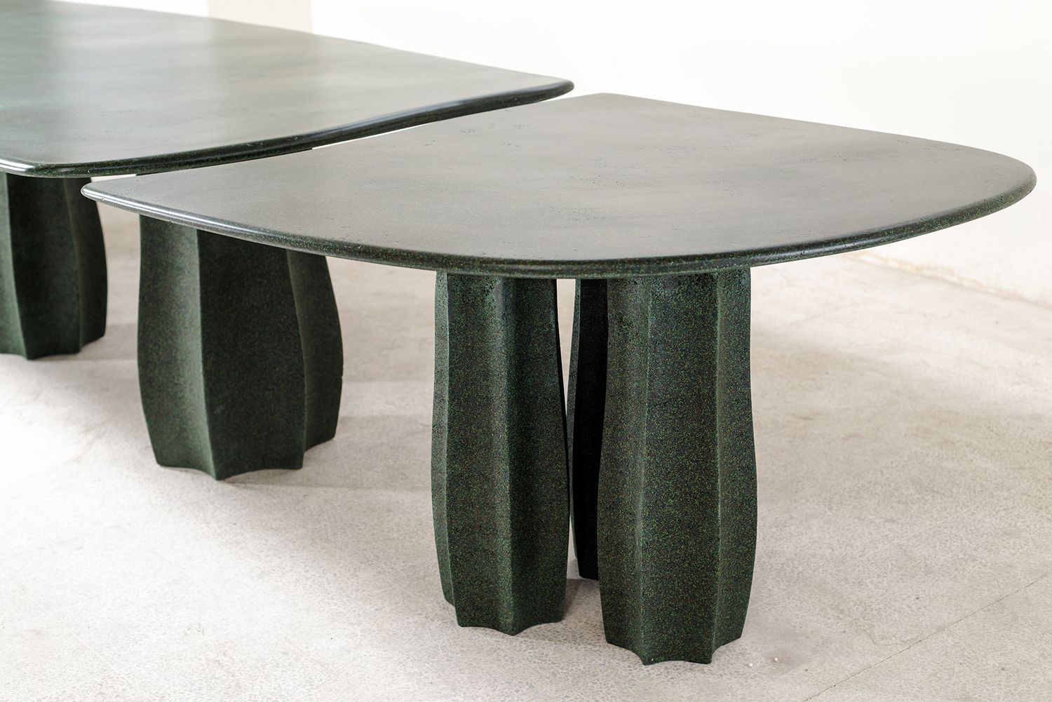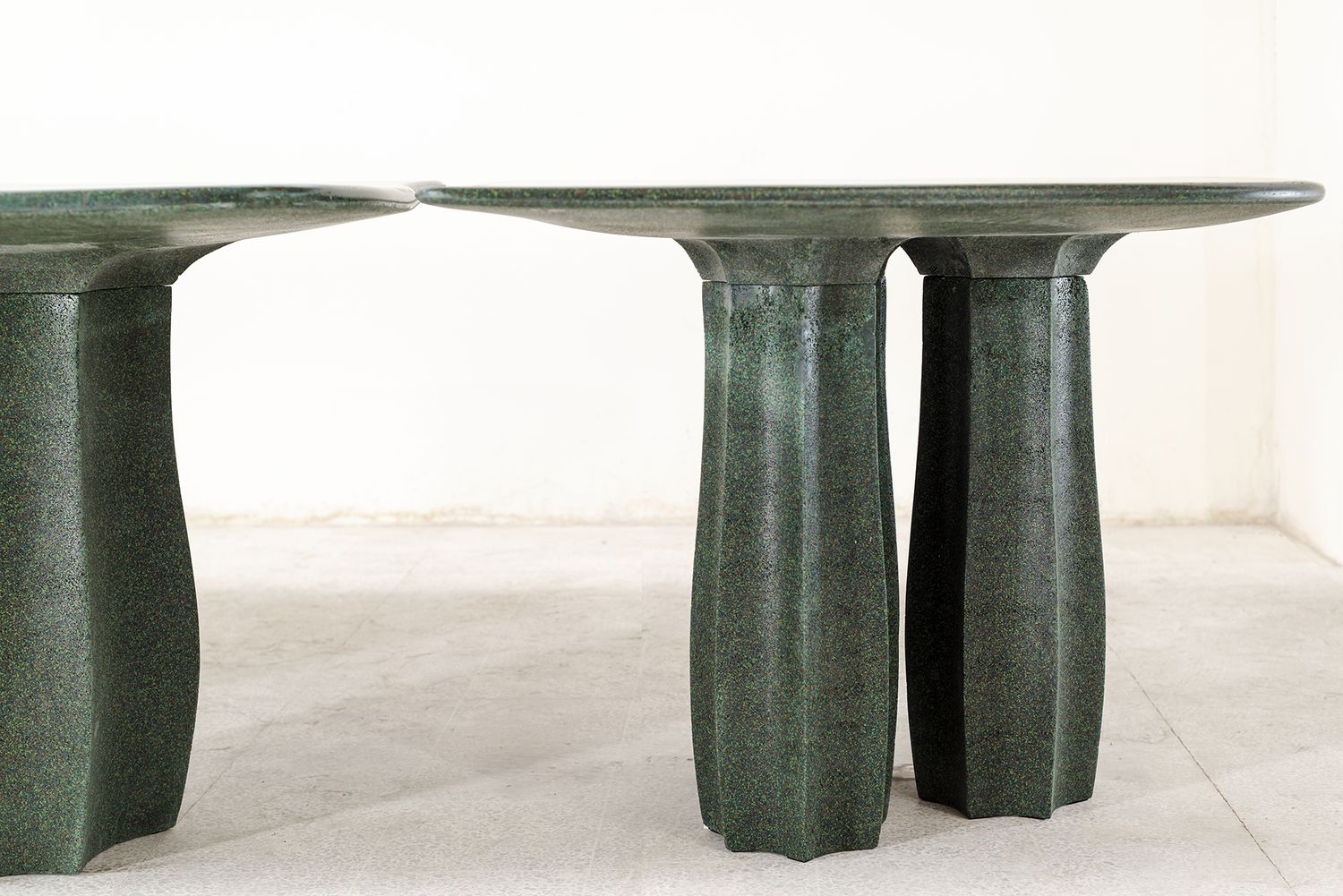 “Cactus” — the pieces, made using the Earth Cast technique, are inspired by an intricate fusion of particles. Pure terracotta, sand, limestone, and other natural elements are fused together to capture nature in its element. The collection is inspired by the qualities of cacti.