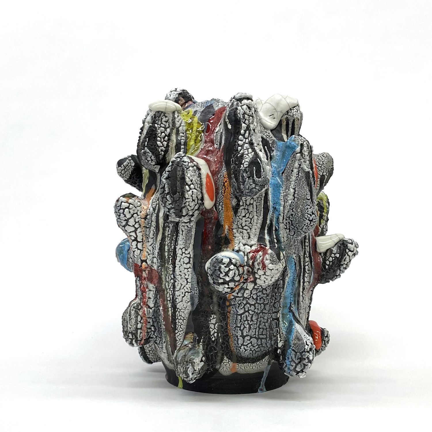 There’s nothing new about the intimacy of touching clay and leaving your mark in earthen materials. Humans have been doing this from the very beginning; leaving a record or evidence of their existence, expression, and belief in any given material that they handle. It is a form of self- importance; a belief that what you’re saying is worth preserving. In this recent work, there is an almost haptic quality. it’s a language not composed of words, rather a composition of marks and bumps and stretching and pressing. In the end a story is being told, a form emerges; a truth is expressed.