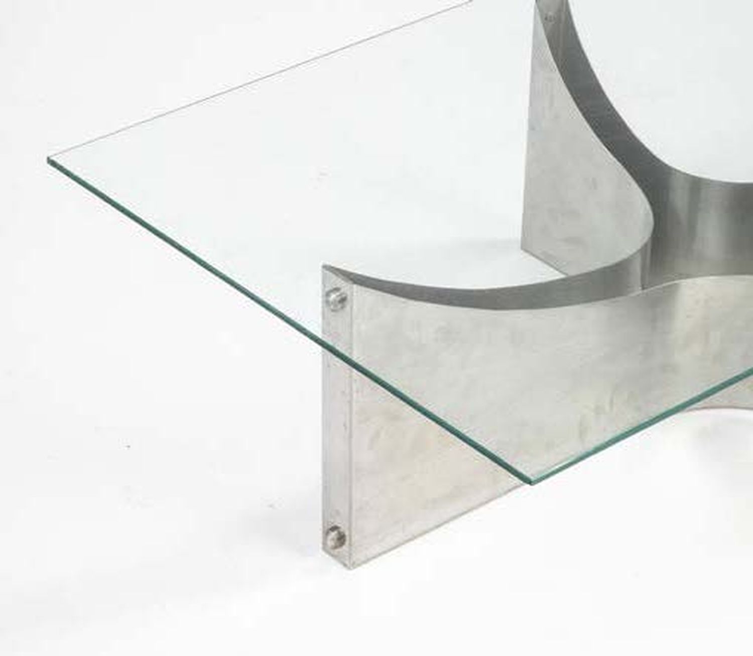 Brushed metal structure with a glass top.