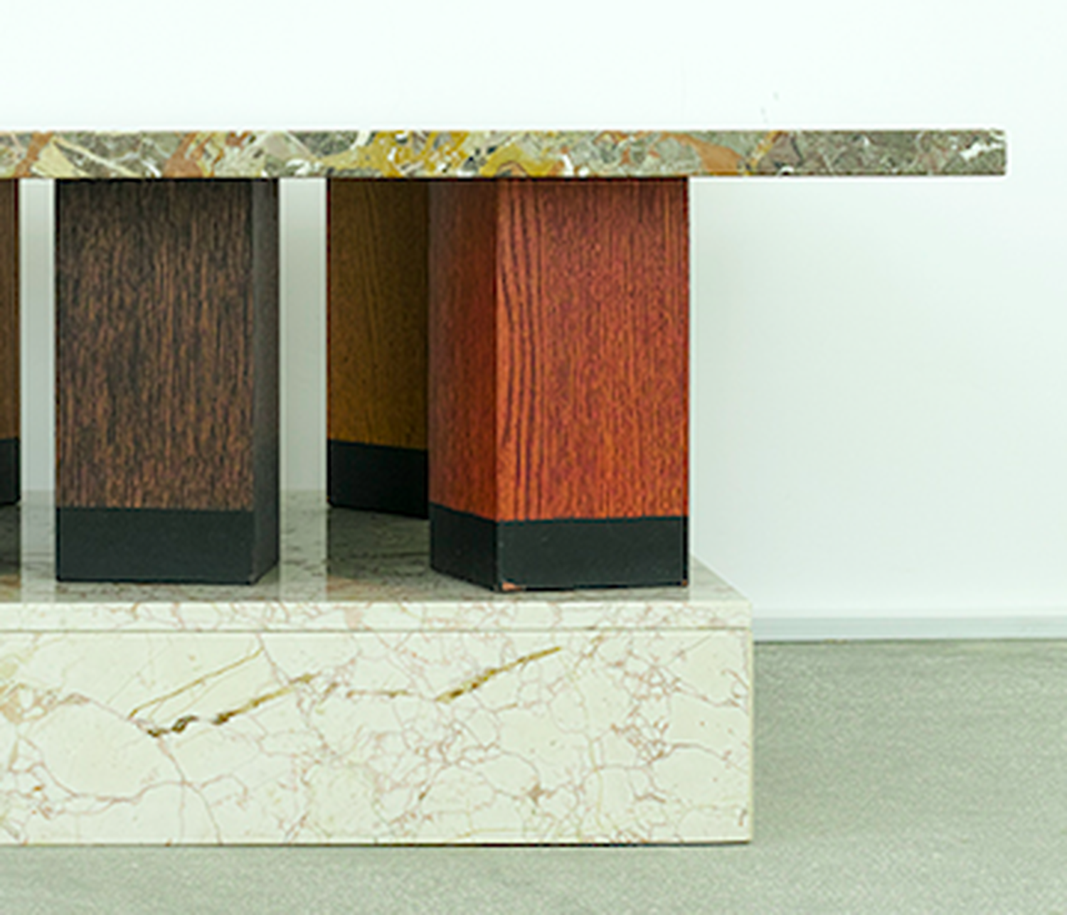 While continuing to design for Olivetti in the 1960s, Sottsass developed a range of objects which were expressions of his personal experiences traveling in the United States and India. These objects included large altar-like ceramic sculptures and his “superboxes”, radical sculptural gestures presented within a context of consumer product, as conceptual statement. Covered in bold and colorful, simulated custom laminates, they were precursors to memphis, a movement which came more than a decade later. His work from the late 60s to the 70s was defined by experimental collaborations with younger designers such as Superstudio and Archizoom association, and association with the radical movement, culminating in the foundation of Memphis at the turn of the decade.