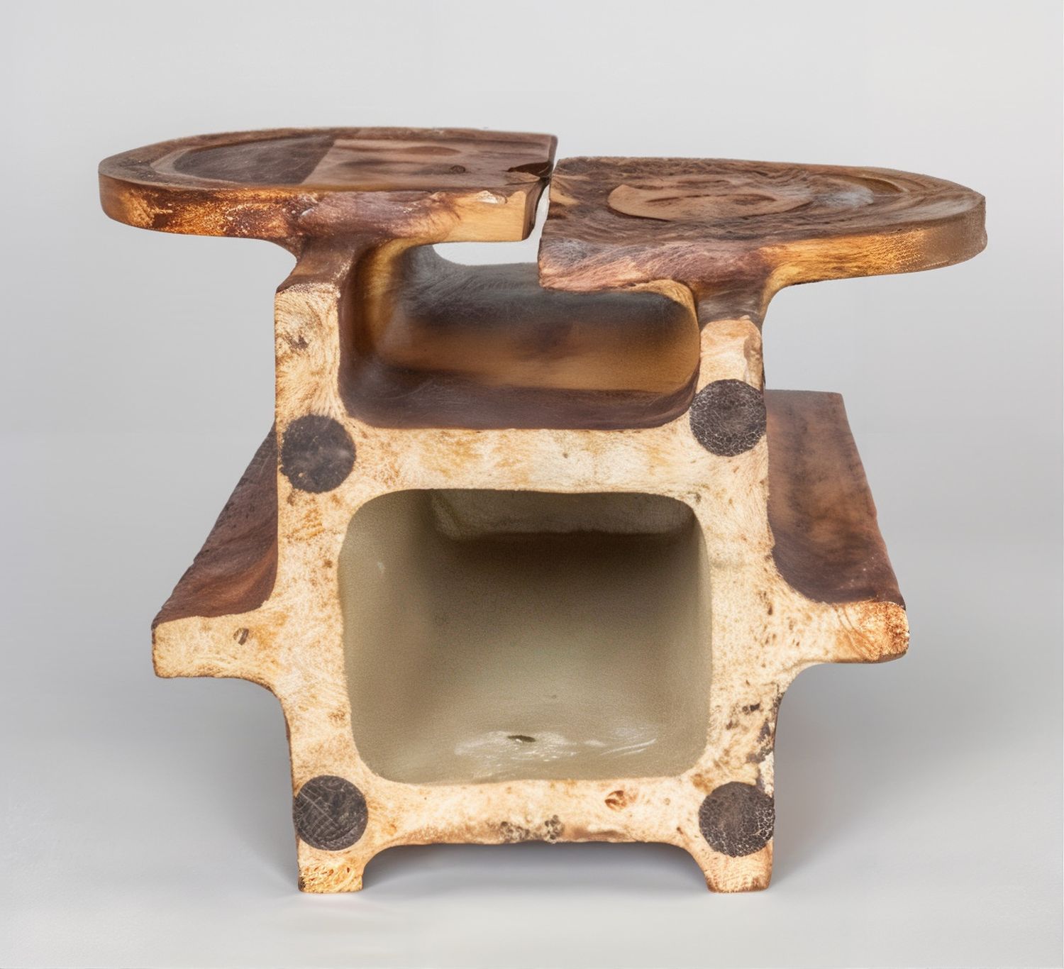 Capron’s distinctive style often incorporated earthenware and enameled lava tiles, traditionally reserved for decorative panels. This unique use of ceramics for furniture and objects became his signature. Notably, Capron was a trailblazer in leveraging his ceramic expertise for semi-industrial production, transforming his workshop into a small factory with an international reputation.