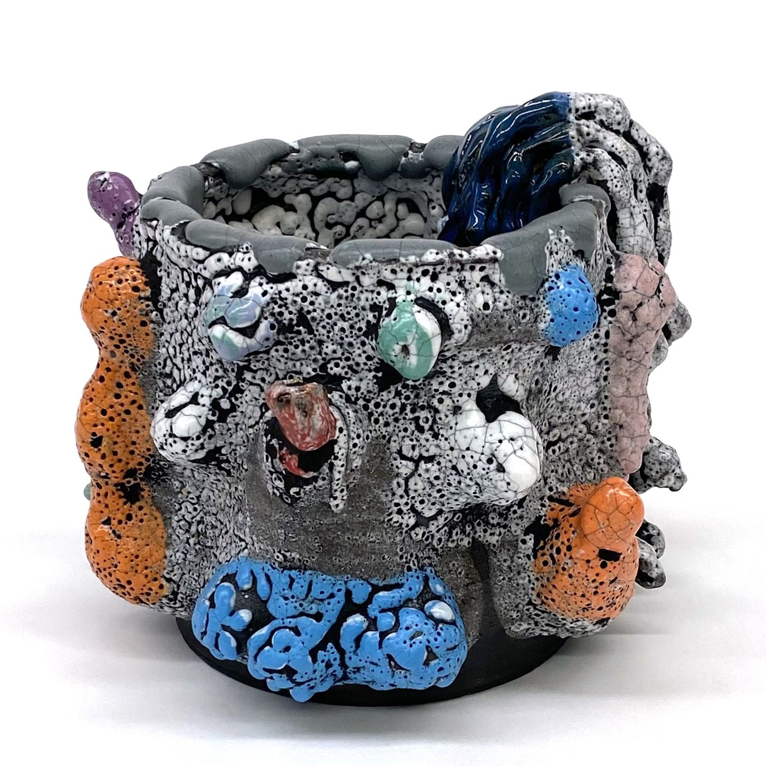 Vince Palacios has been working in the field of ceramic art since 1988. Palacios received his Masters of Ceramic Art from Alfred University and his BFA in ceramics at California State University at Long Beach. He now serves as Professor of the Ceramics Department at El Camino College in Torrance California. He came to El Camino College in 2011 after teaching for six years at Western Illinois University and ten years before that at California State University, Long Beach. He has shown his work nationally and internationally and is included in several important private collections as well as prominent museum collections. Palacios continues to exhibit his work and has developed a unique approach to the use of raw glass and ceramic materials as a means of crafting intricate narratives addressing geological process, pyroclastic interaction, and heat/chemical reactions