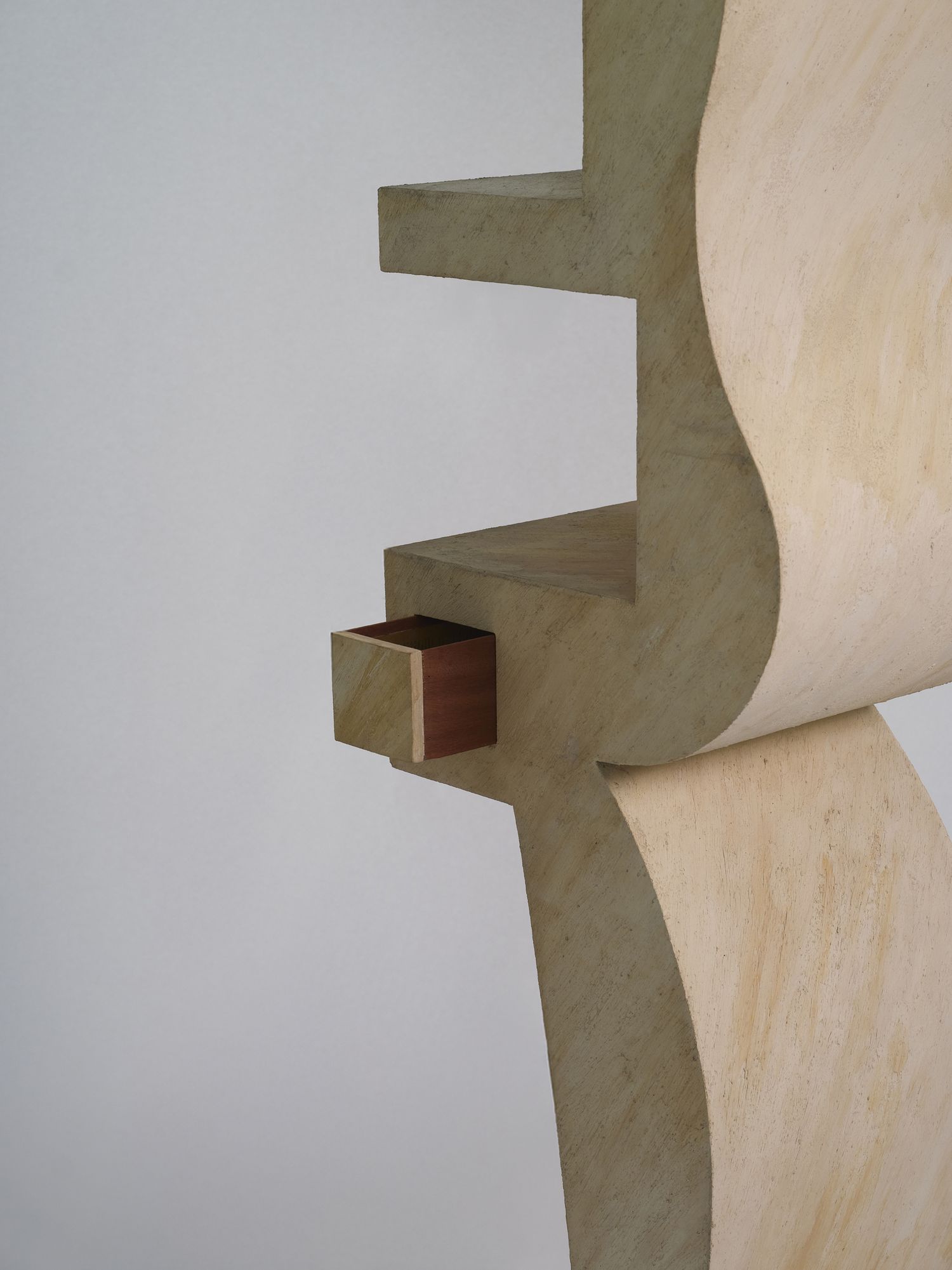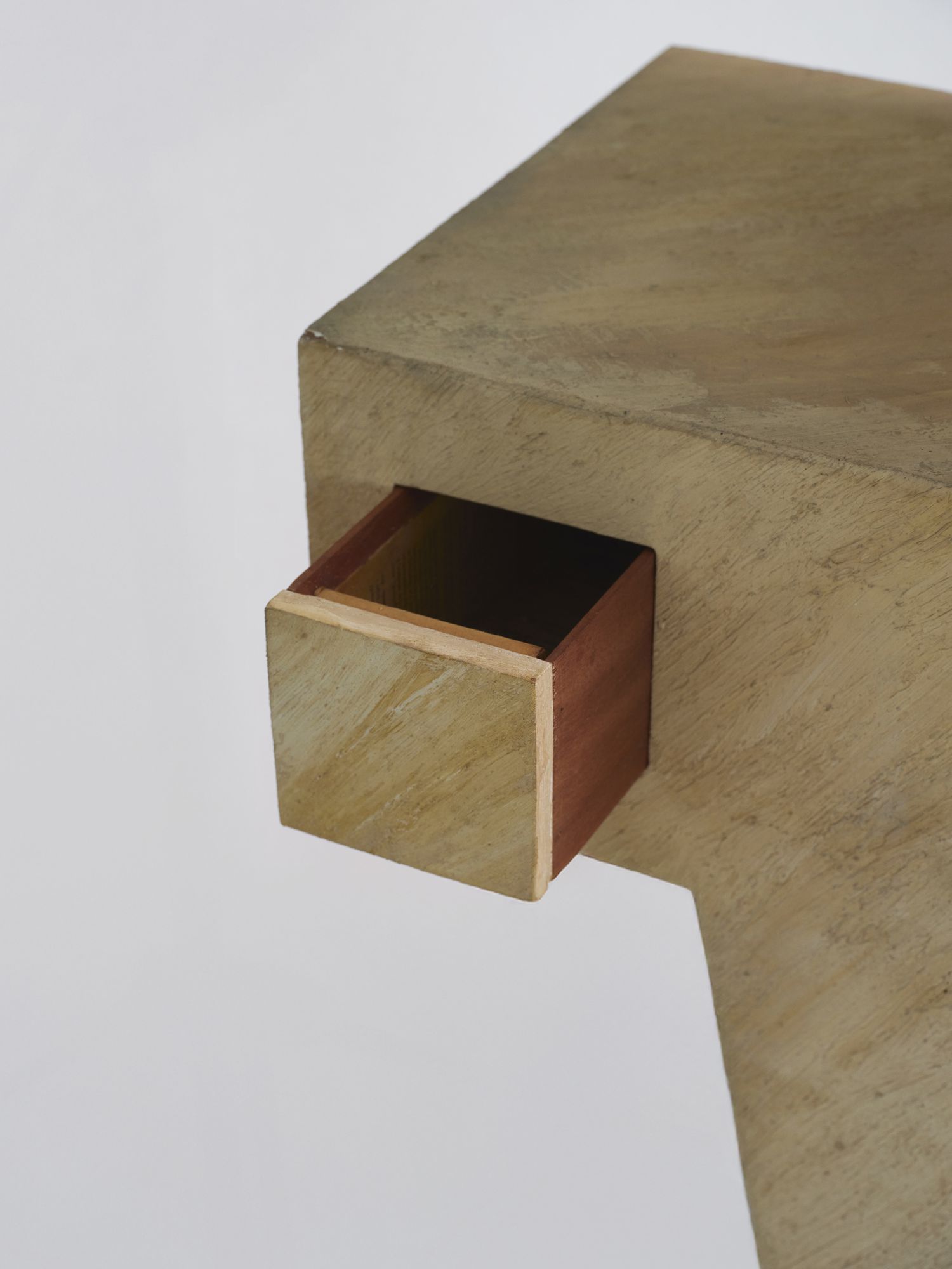 Illuminated bookcase or coffee table in painted wood. Signed under the drawer. Unique piece.