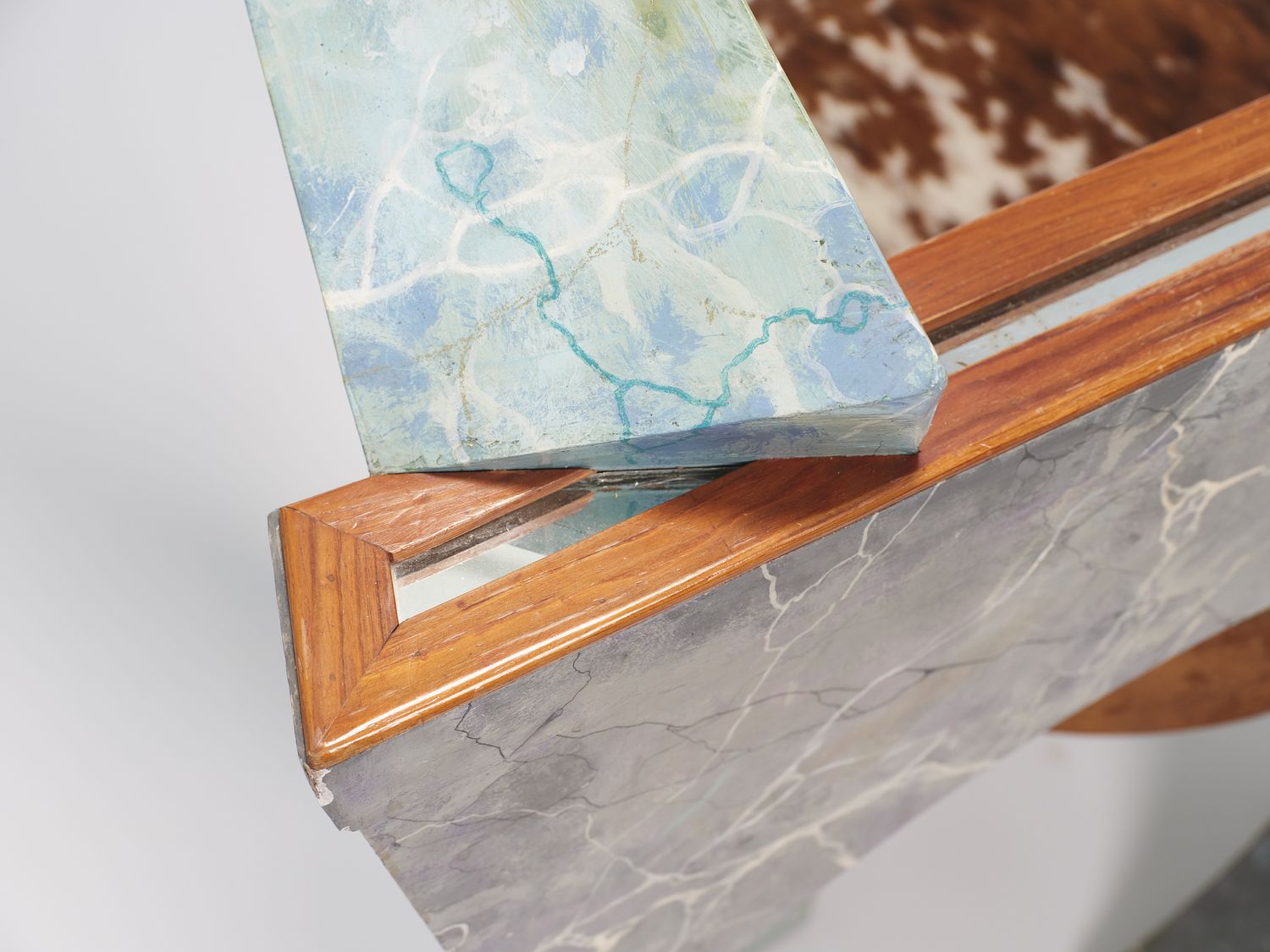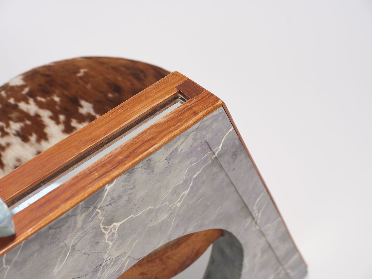 Wood, faux marble finish, mirror, cowhide